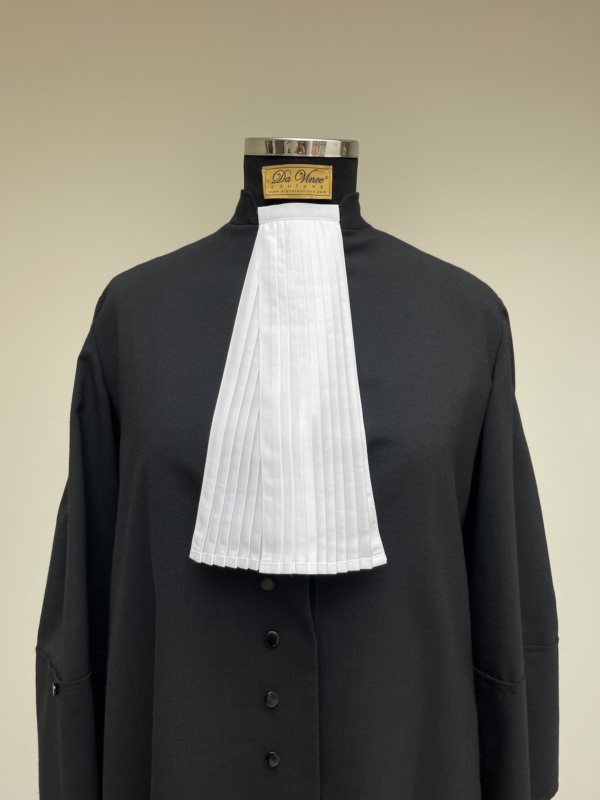 Knoopsgatsluiting: is een hoogwaardige witte bef, voorzien van permanent geplisseerde plooien, afgewerkt met een halfrond belegdeel, die d.m.v. een knoopsgat aan de uw toga bevestigd kan worden. Het knoopsgat is standaard 17mm, maar kan eenvoudig zelf d.m.v. een schaartje of tornmesje vergroot worden naar het knoop formaat die past bij de knoop aan de binnenzijde van uw toga.