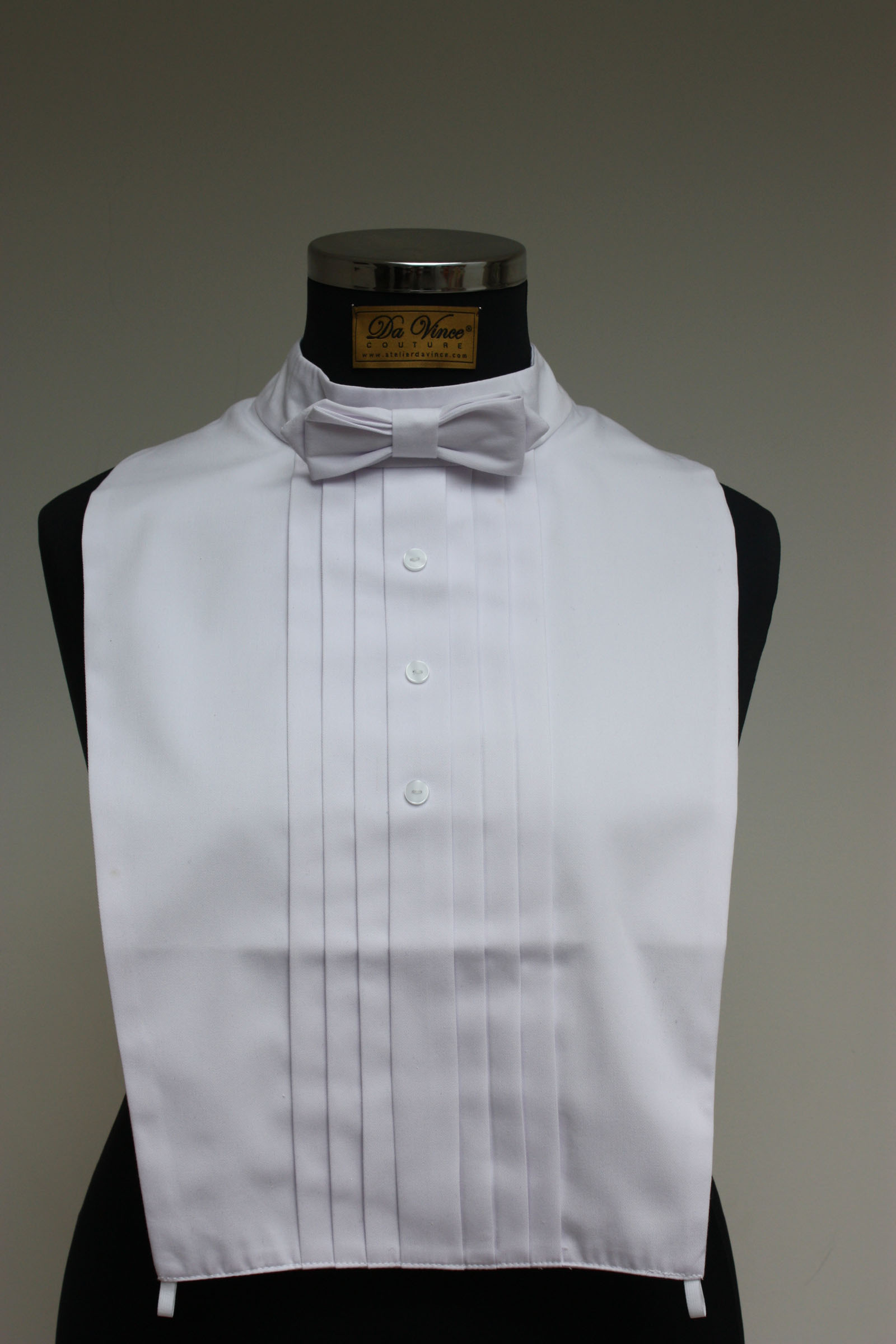 Jabot: met afneembare strik met ronde hals voorzien van klittenbandsluiting.